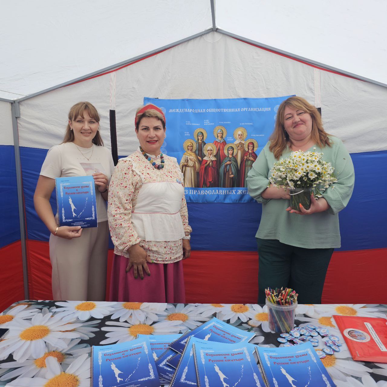 Одним из самых оживлённых мест праздника стала спортивная площадка «Русский богатырь», где каждый желающий мог испытать свою силу, ловкость, смекалку и получить не только заряд бодрости, но и вкусные призы Познавательные раскраски «Сахалинские храмы и Русские богатыри» стали настоящим подарком для любителей истории и творчества. Вызвав интерес не только у детей, но и у взрослых На празднике звучали песни в исполнении известных сахалинских творческих коллективов, работали интерактивные площадки, также гости события объединились для прохождения семейного квеста.